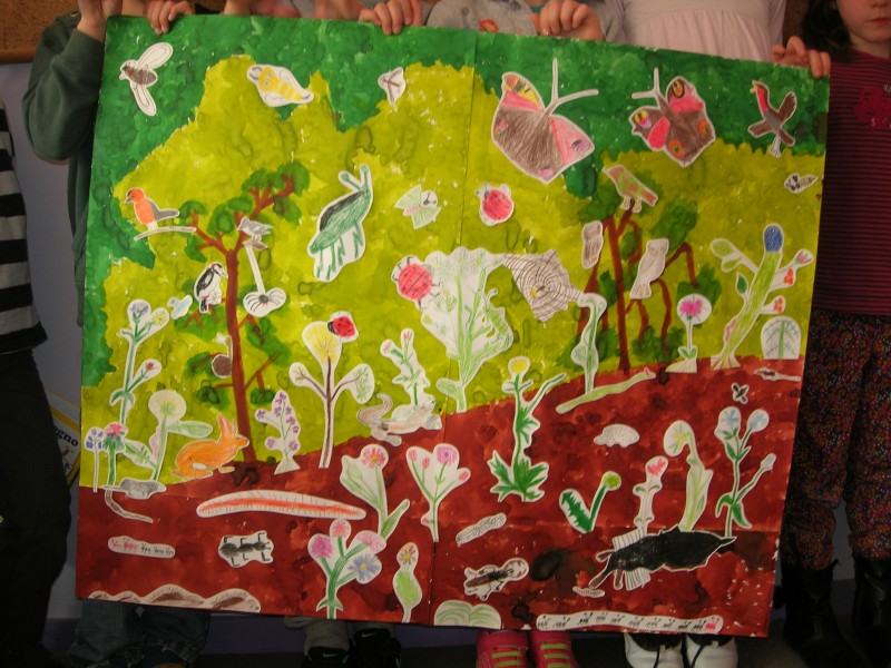 Au deuxième trimestre, les petits élèves de CP et CE1 ont participé au concours lancé par Yvelines Environnement sur le thème "nos amis les haies et les bosquets" ; ils ont réalisé un gand panneau peint figurant une haie et ses habitants. Ils se sont tellement bien appliqués qu'ils ont gagné le 1er prix de dessin dans leur catégorie !!! BRAVO aux enfants ! voici quelques images de leur travail