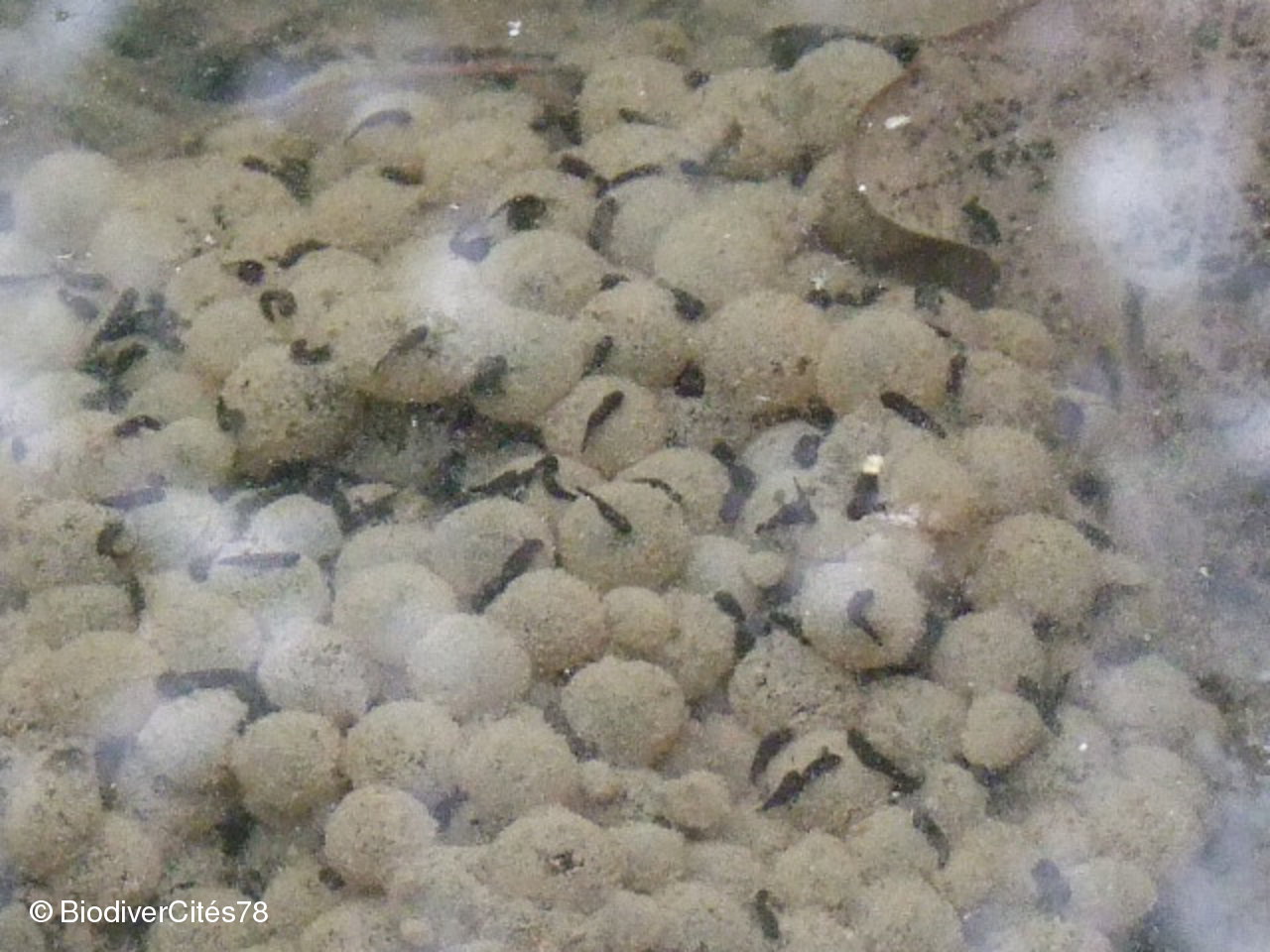 Observation des oiseaux et de la nature en forêt de Marly : trous de pic dans un arbre, pic-mar, troglodyte, mésanges...Déjà des oeufs de grenouilles dans la mare et des têtards tout juste éclos !
