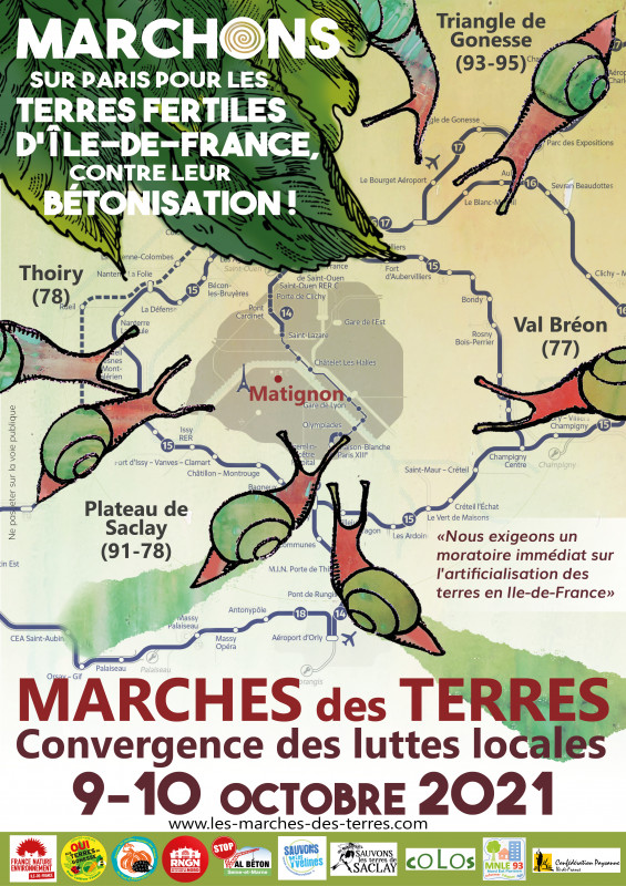 « Les terres fertiles d’Ile de France, notamment en proche couronne, disparaissent à grande vitesse, et ce souvent en contradiction avec les politiques publiques. Ce n’est plus une nouveauté que de le dire. Les rassemblements des 9 et 10 Octobre, organisés par FNE et diverses associations de protection de notre environnement, visaient à attirer l’attention du plus grand nombre sur quelques cas particulièrement emblématiques.