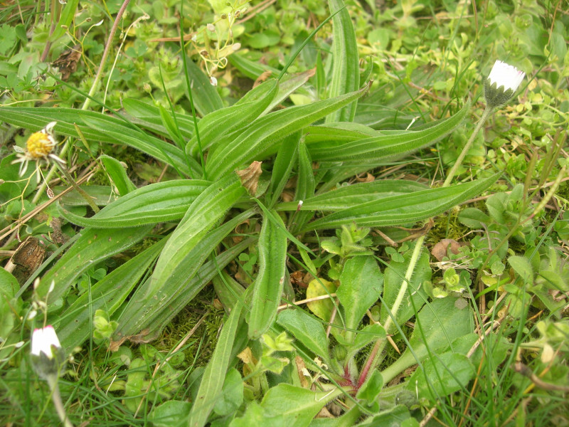 Plantain lancéolé avec des pâquerettes